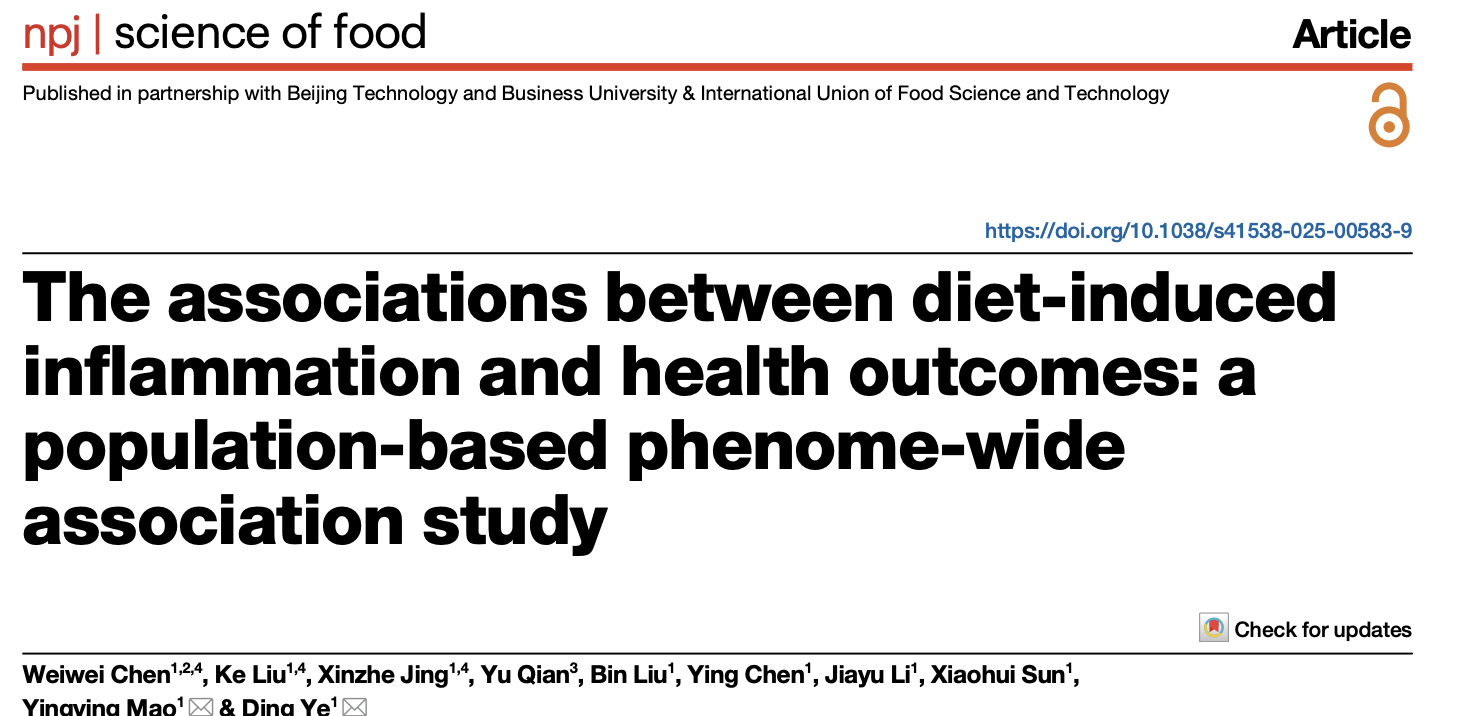 近日,浙江中医药大学公共卫生学院叶丁副教授在npj Science of Food(中科院一区Top期刊)杂志上发表了题为The associations between diet-induced inflammation and health outcomes: a population-based phenome-wide association study的研究论文。该研究全面评估了 DII 与多种健康结局的关联,并强调了抗炎饮食对于疾病预防的重要性。